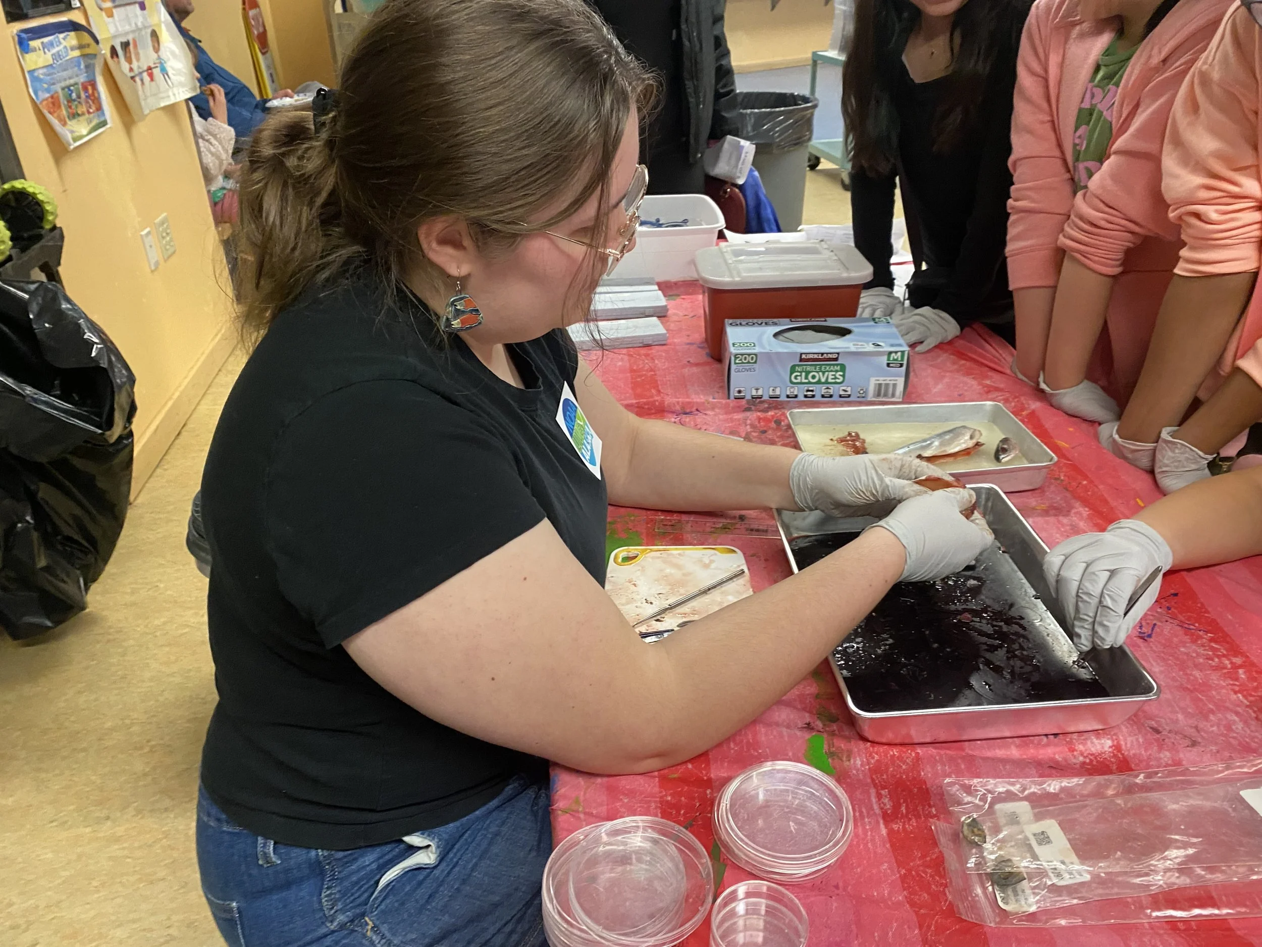 Salmon dissection at a Juneau elementary school to promote Science, Technology, Engineering, Art, and Mathematics (STEAM).